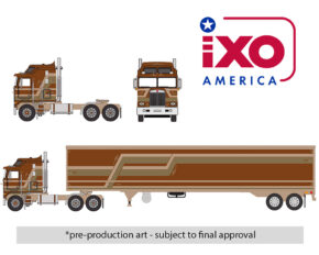 (Preorder) IXO Models 1:64 1976 Kenworth K100 Aerodyne Semi Truck with Modern Trailker – Brown