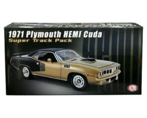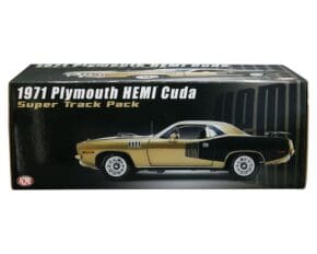 ACME 1:18 1971 Plymouth HEMI Cuda – Super Track Pack (Goldleaf Metallic with black Hemi billboard striping) – Limited 912 Pieces