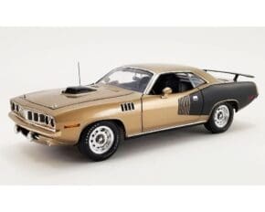 ACME 1:18 1971 PLymouth HEMI Cuda with Vinyl Top – Super Track Pack (Goldleaf Metallic with black Hemi billboard striping) – Limited 426 Pieces