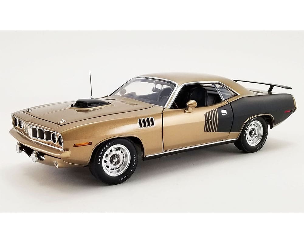 ACME 1:18 1971 Plymouth HEMI Cuda – Super Track Pack (Goldleaf Metallic with black Hemi billboard striping) – Limited 912 Pieces