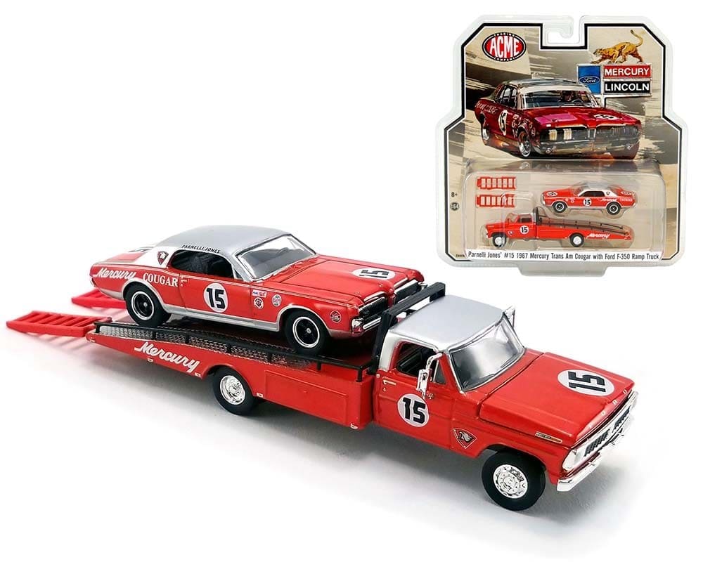 ACME 1:64 Parnelli Jones’ #15 1967 Mercury Trans Am Cougar with Ford F-350 Ramp Truck