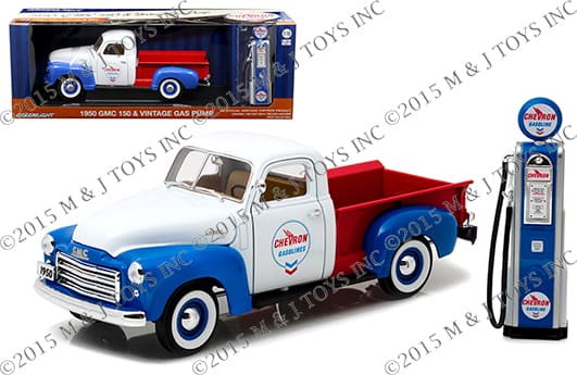 GREENLIGHT 1:18 1950 GMC 150 CHEVRON WITH VINTAGE CHEVRON GAS PUMP