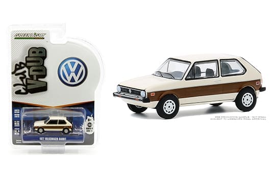 Greenlight 1:64 Club Vee-Dub Series 11 – 1977 Volkswagen Rabbit with Woody Graphics (White/Wood)