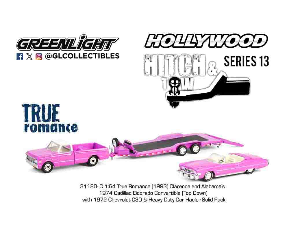 Greenlight 1:64 Hollywood Hitch & Tow – True Romance 1974 Cadillac Eldorado w/1972 Chevrolet C30 – Pink