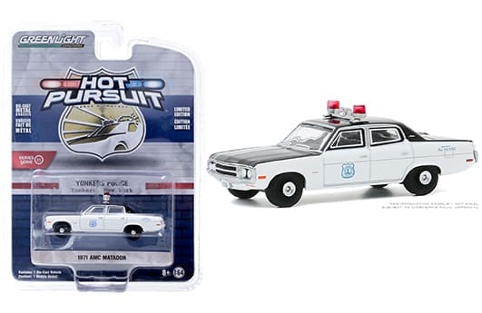 Greenlight 1:64 Hot Pursuit Series 35 – 1971 AMC Matador – Yonkers, New York Police (White/Black)