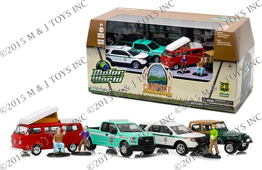 Greenlight 1:64 Motor World Diorma – Campsite Cruisers- United States Forest Service (USFS) Edition