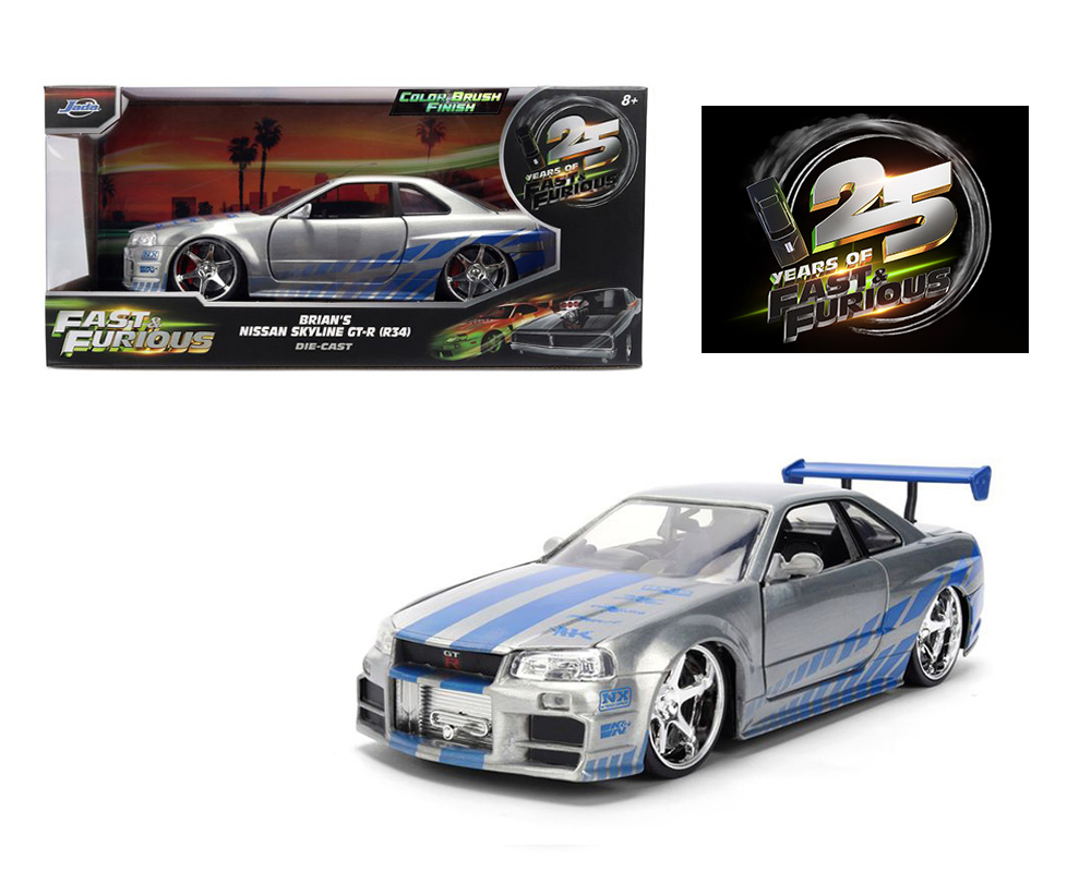 Jada 1:24 Brian’s 2002 Nissan Skyline GT-R34 – Silver- Fast & Furious 25 Year Anniversary