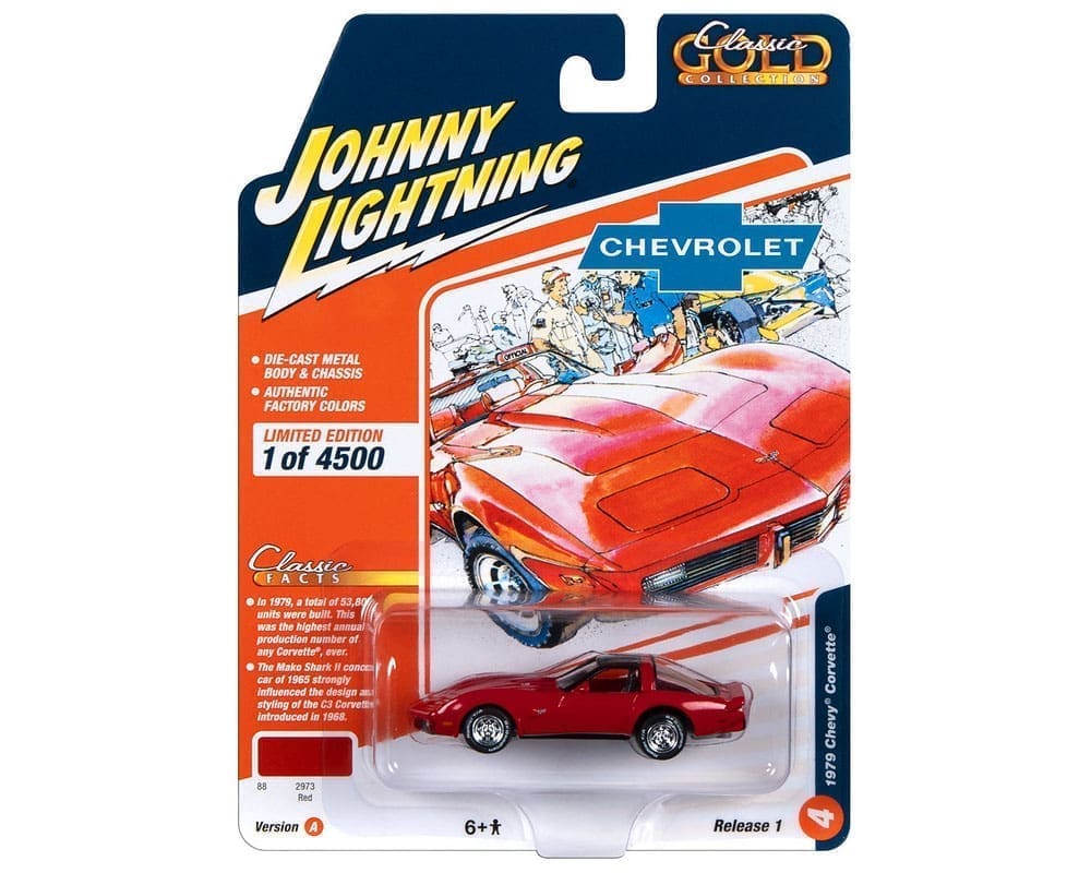 Johnny Lightning 1:64 Classic Gold 2023 Release 1 Version A – 1979 Chevrolet Corvette – Red – Solid Pack