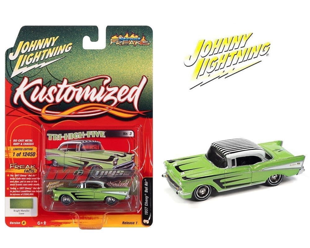 Johnny Lightning 1:64 Street Freaks 2022 Release 1A- 1957 Chevrolet Bel Air Kustom Lime Green Solid Pack