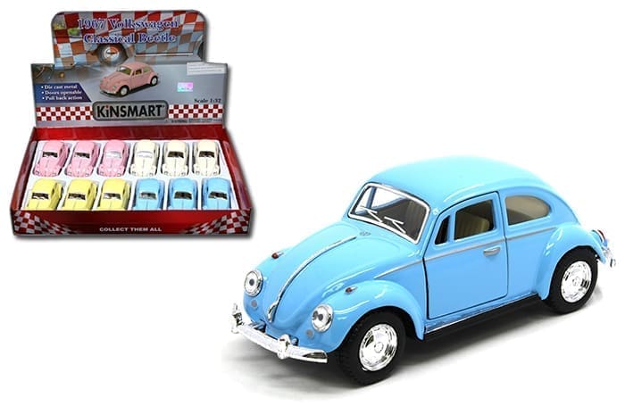 Kinsmart 1:32 1967 Volkswagen Beetle Pastel Solid Colors 5″ – Display Tray Set of 12