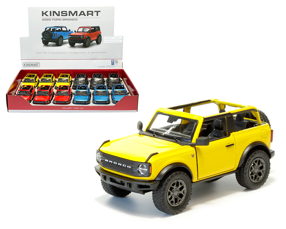 Kinsmart 1:34 2022 Ford Bronco Convertible 4.5″ – Display Set of 12