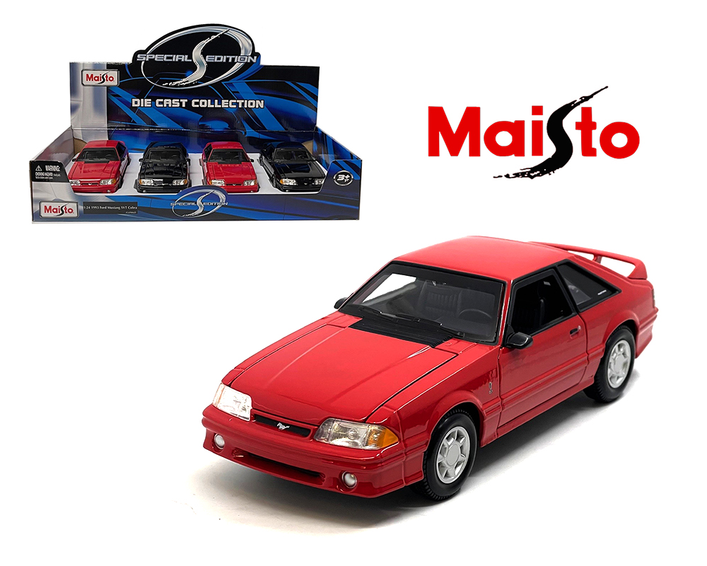 Maisto 1:24 1993 Ford Mustang SVT Cobra – Black, Red – Special Edition – Display Tray Set of 4