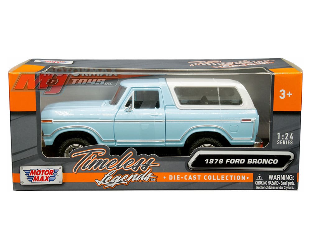Motormax 1:24 1978 Ford Bronco Custom (light blue with white hardtop) – Timeless Legends