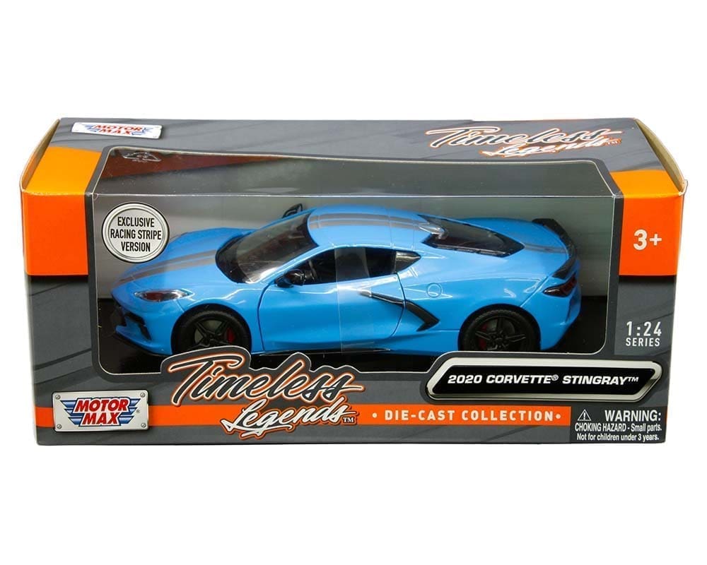 Motormax 1:24 2020 Chevrolet Corvette C8 Stingray with Silver Striples -Timeless Legends