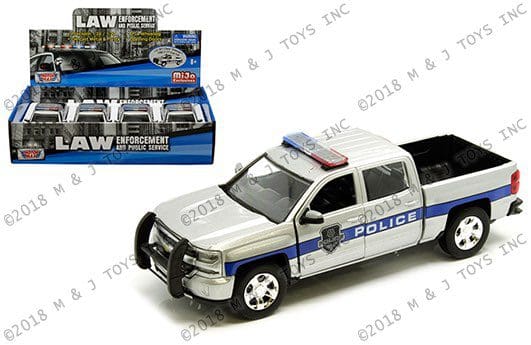Motormax 1:27 Display – Law Enforcement and Public Service – 2017 Chevrolet Silverado 1500 LT Z71 Crew Cab Police (Silver) – MiJo Exclusives