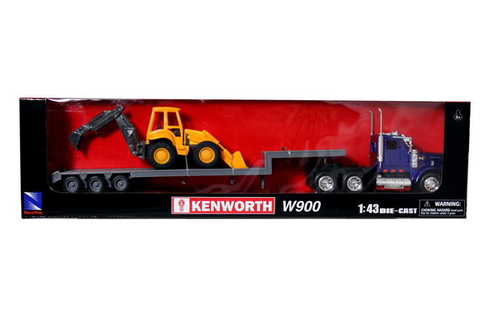 New Ray 1:43 Kenworth W900 Lowboy with Blackhole Loader- Blue – Long Haul Trucker