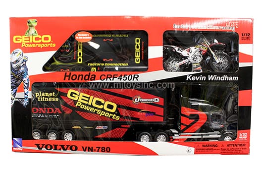 New Ray 1:32 Set Volvo VN-780 with Honda CRF450R GEICO Powersports Kevin Winham