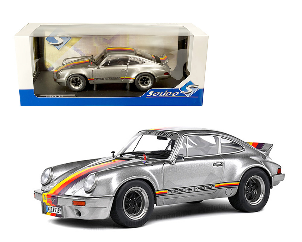 Solido 1:18 1973 Porsche 911 RSR – Kremer Design – Silver with Multi-color Stripes